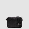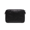 Сумка виконана з текстурної шкіри з тисненням фірмової канви бренду.