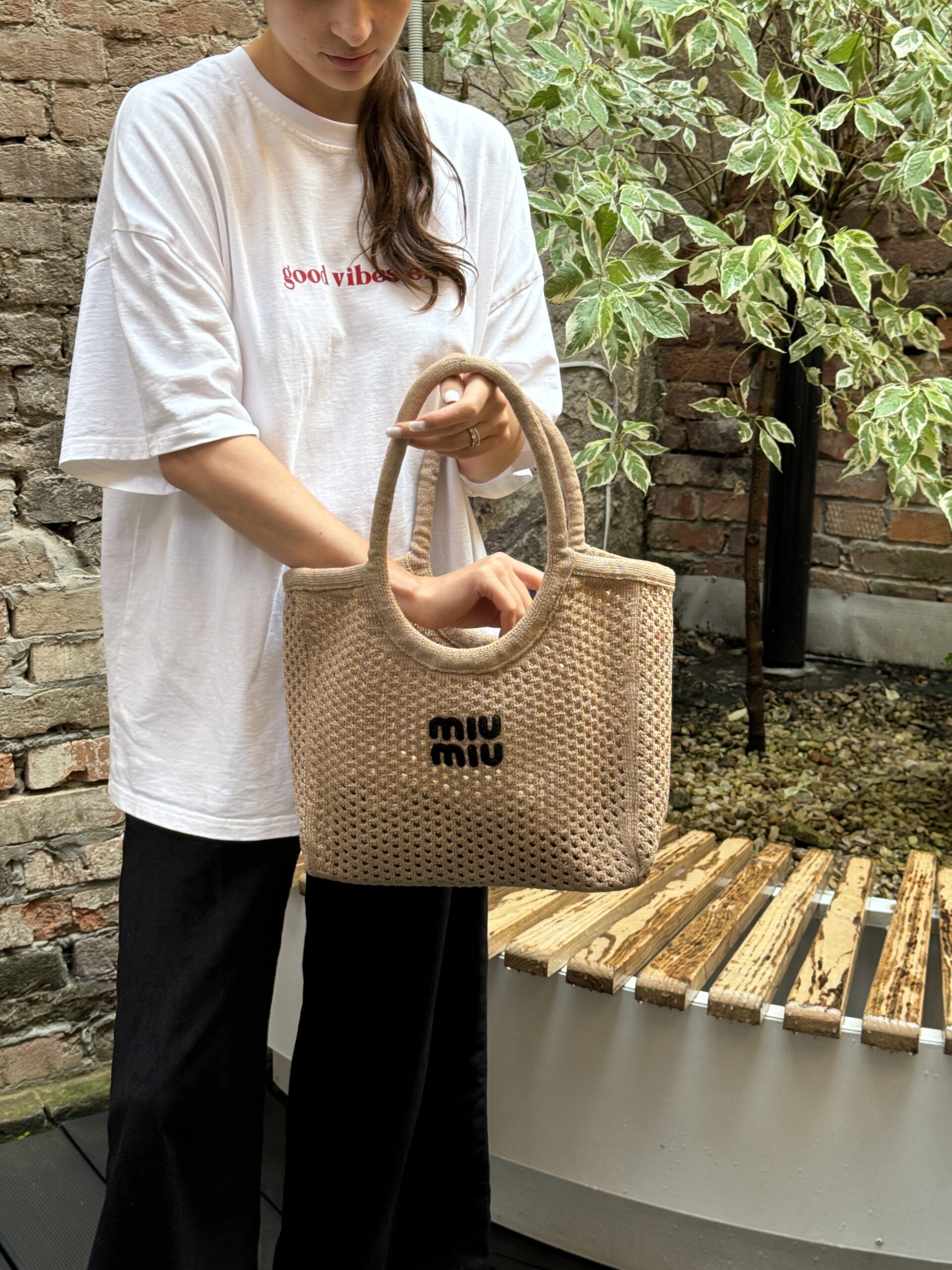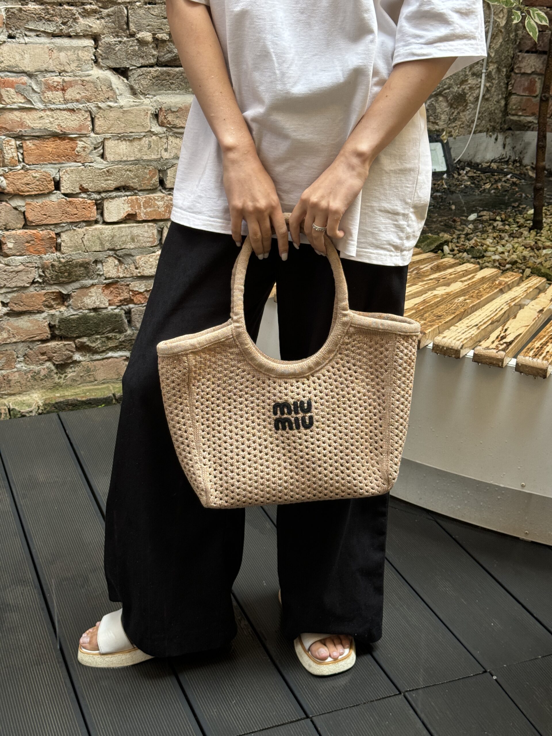 Miu Miu Raffia And Linen Tote Bag